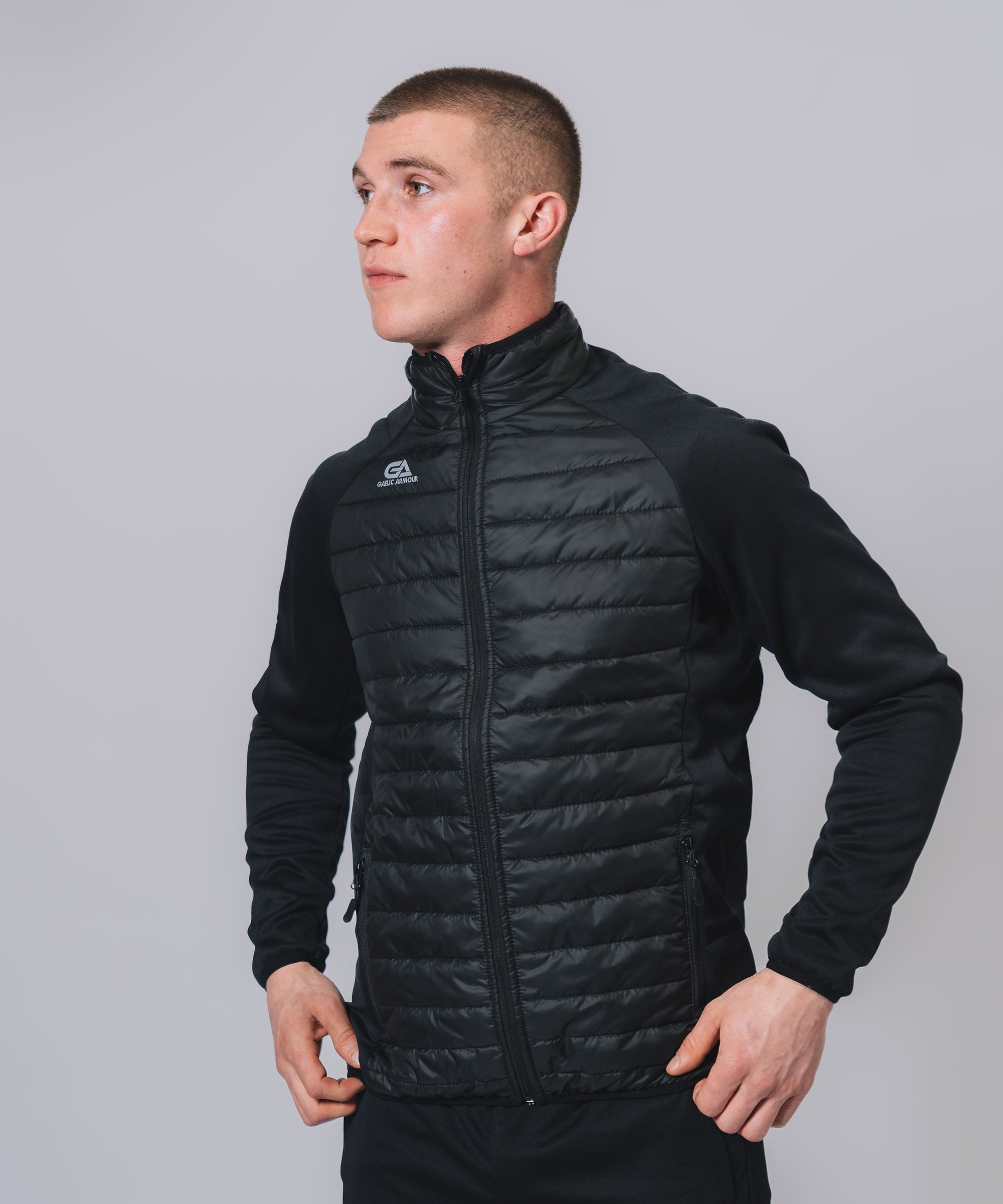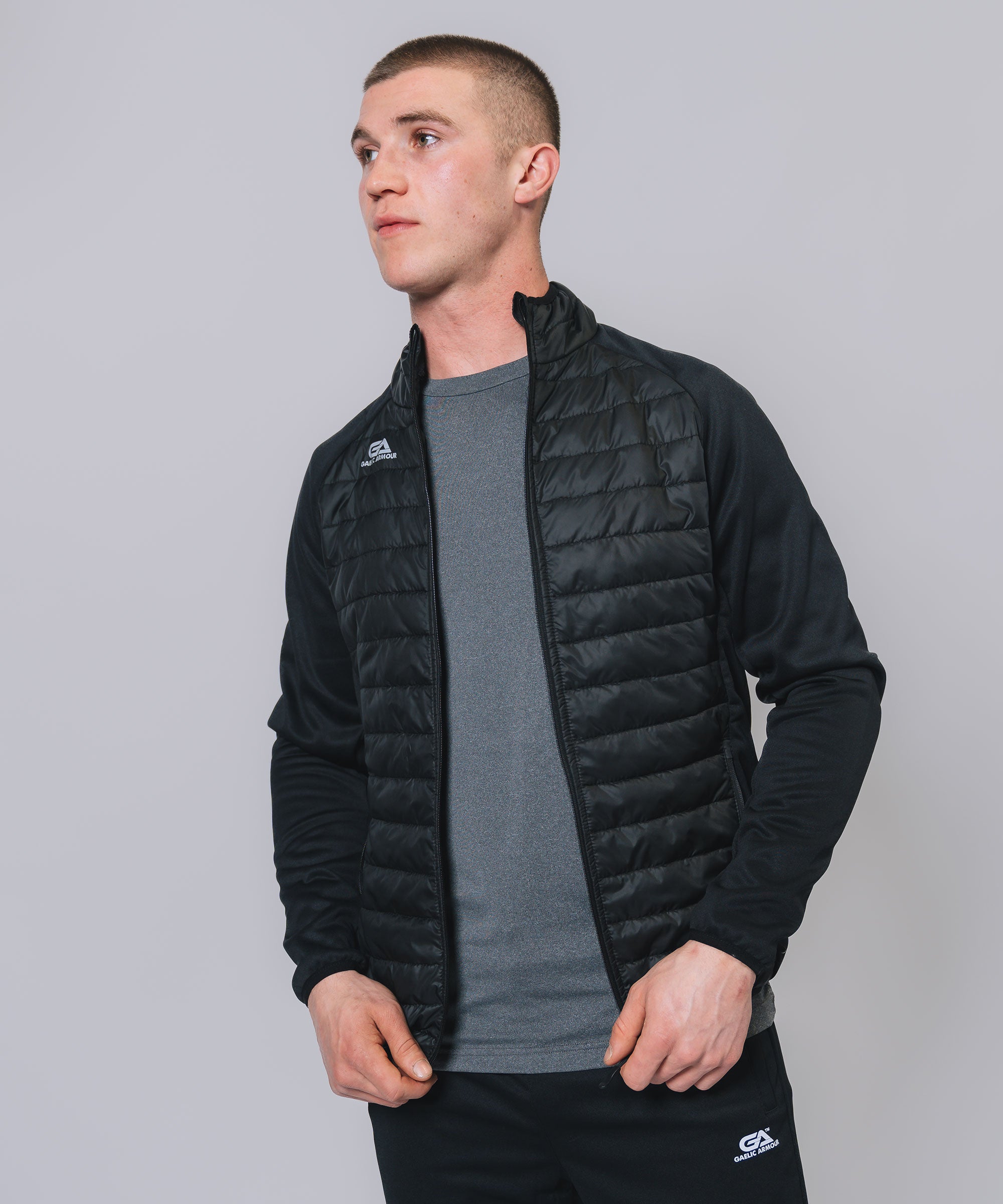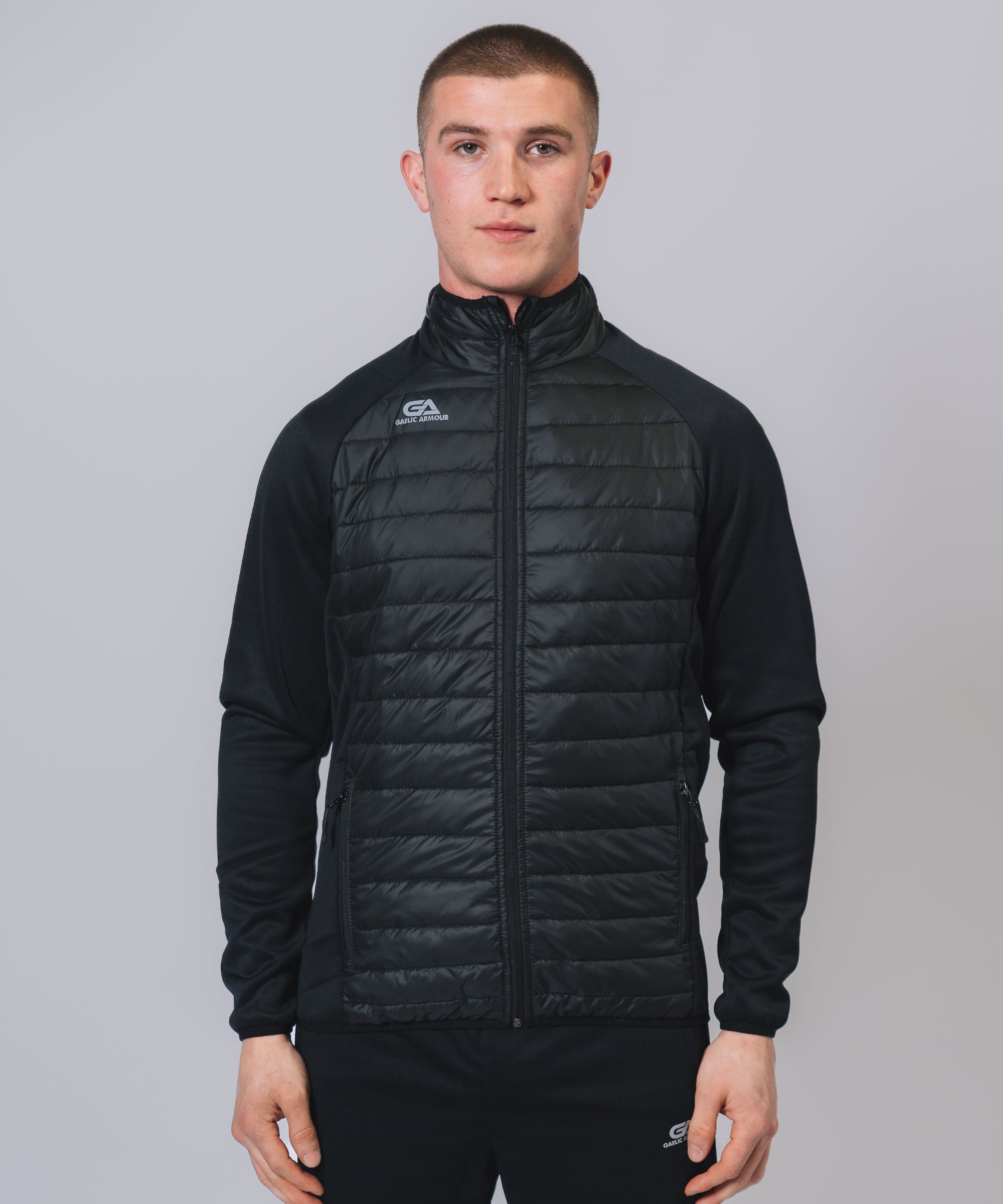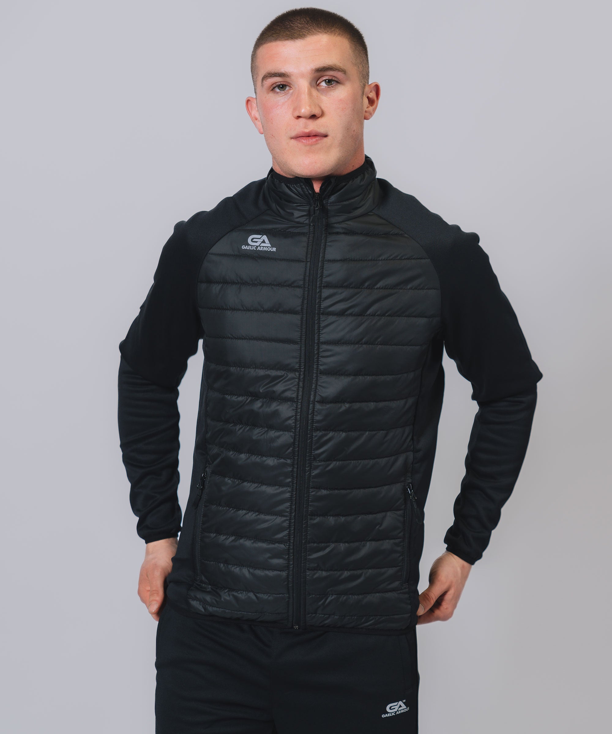 Our Core Hooded Hybrid gives weather protection & insulation all season, Ideal layer option in even the toughest conditions. The outer matt shell fabric works to shed rain, while the insulation helps regulate your body temperature so you can take to the streets or sideline with confidence. Stay warm, stay dry and look your best.
