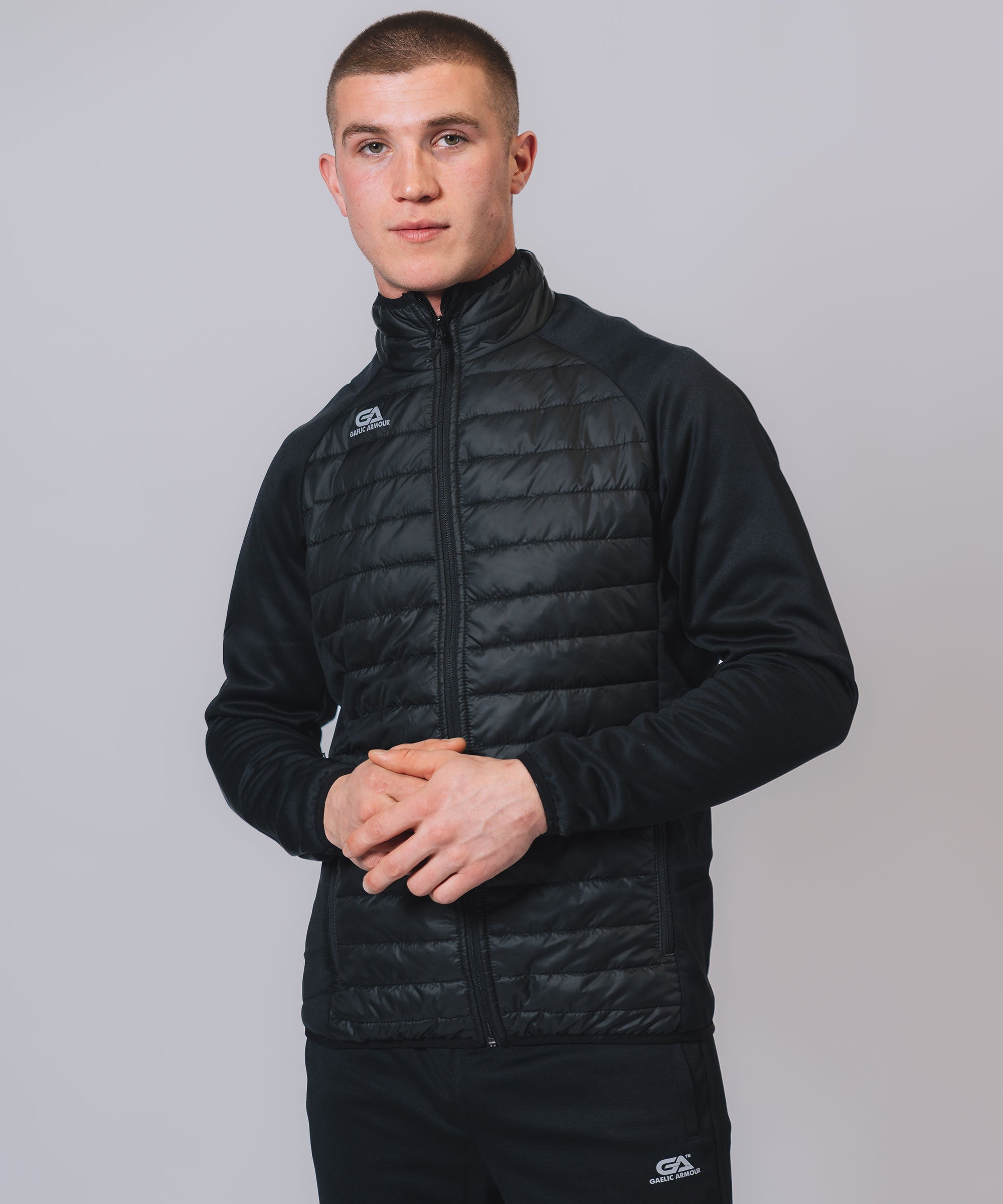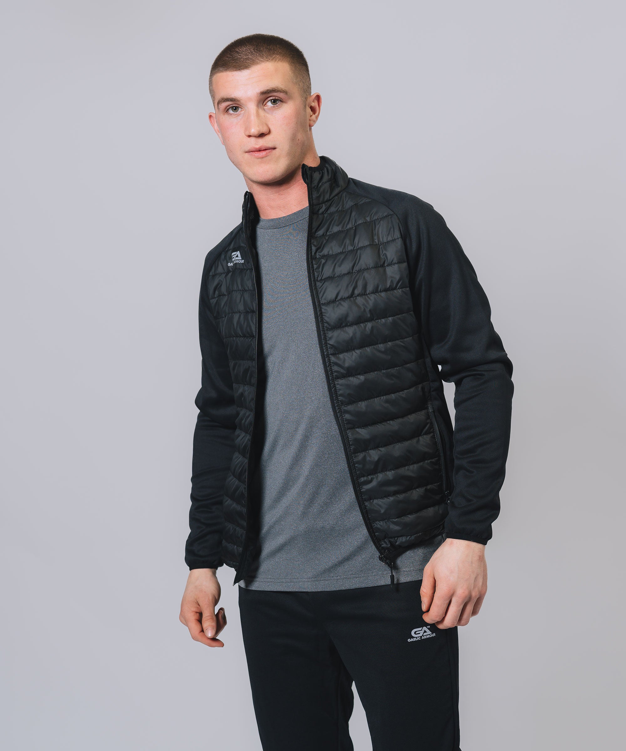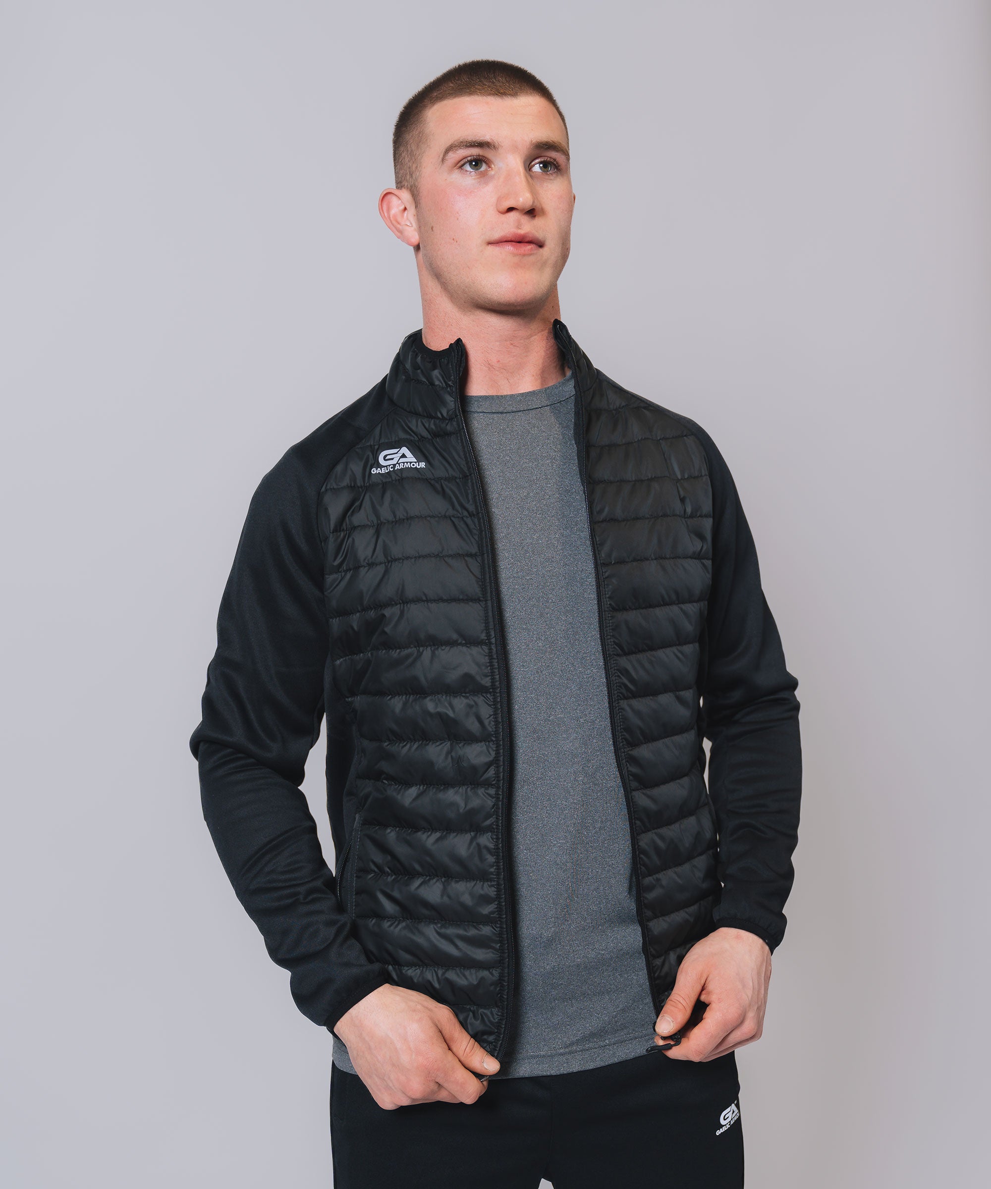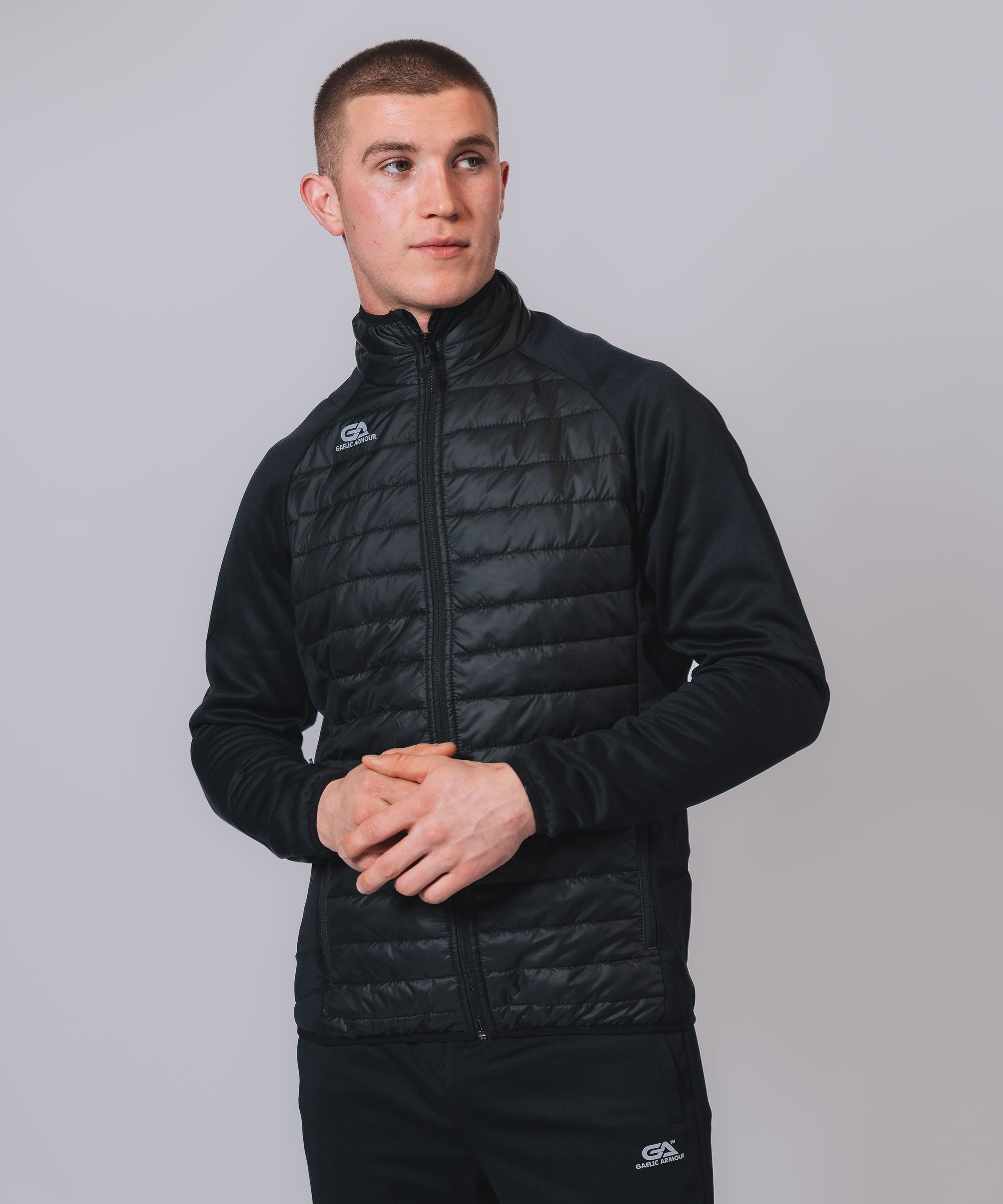 Our Core Hooded Hybrid gives weather protection & insulation all season, Ideal layer option in even the toughest conditions. The outer matt shell fabric works to shed rain, while the insulation helps regulate your body temperature so you can take to the streets or sideline with confidence. Stay warm, stay dry and look your best.