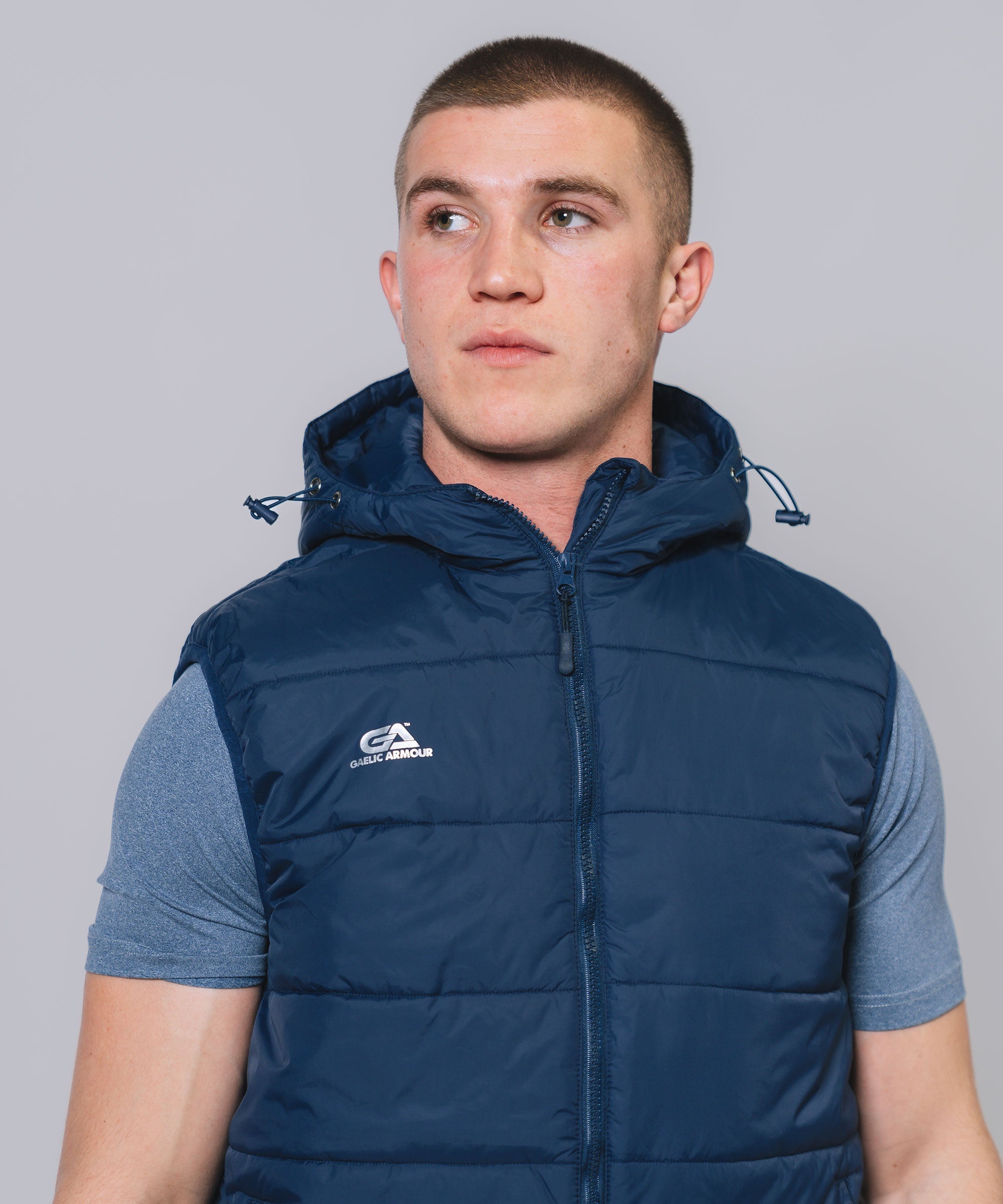 Our Padded Hooded Gilet gives weather protection & insulation all season, Ideal layer option in even the toughest conditions. The outer shell fabric works to shed rain, while the insulation helps regulate your body temperature so you can take to the streets or sideline with confidence. Stay warm, stay dry and look your best.