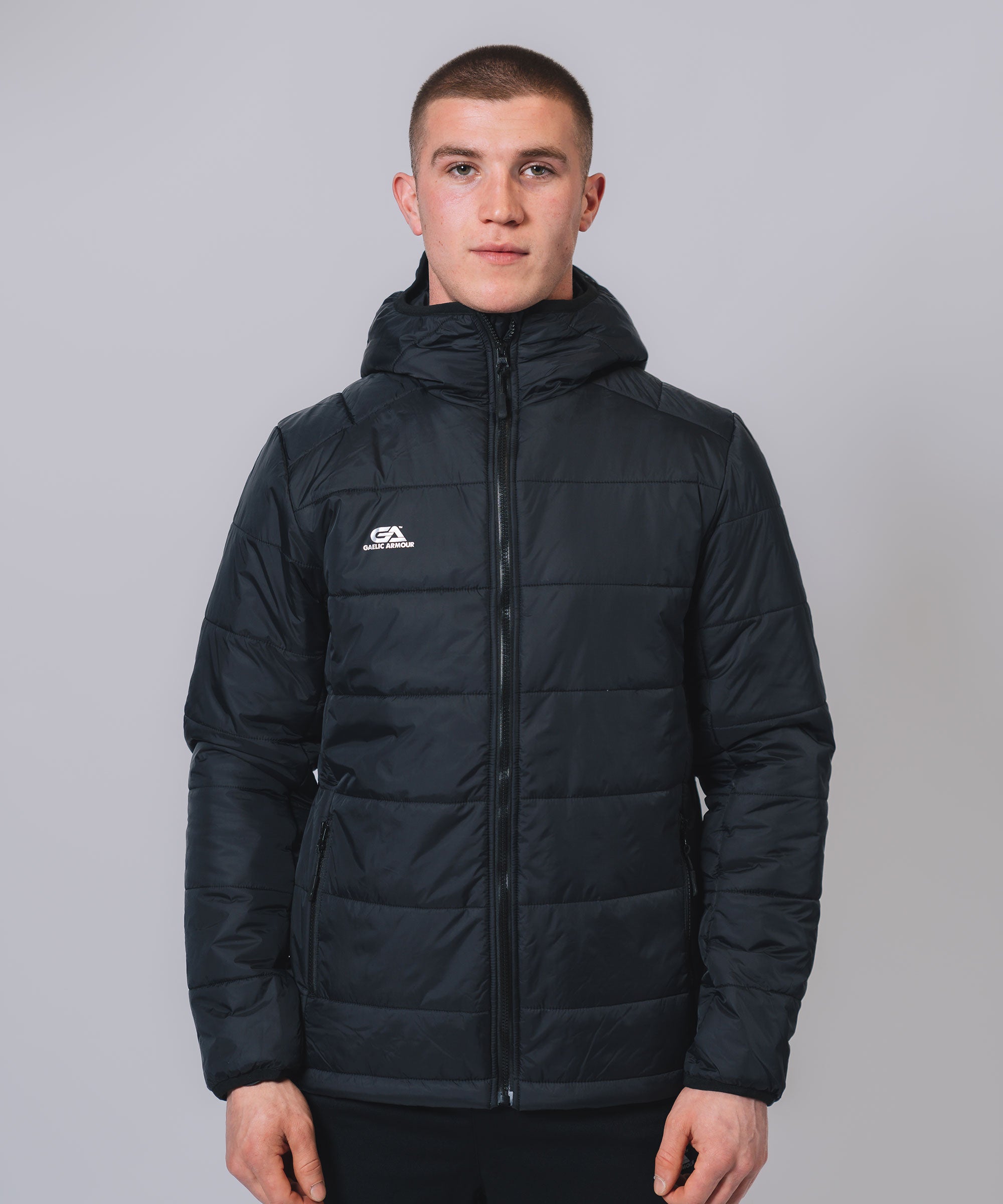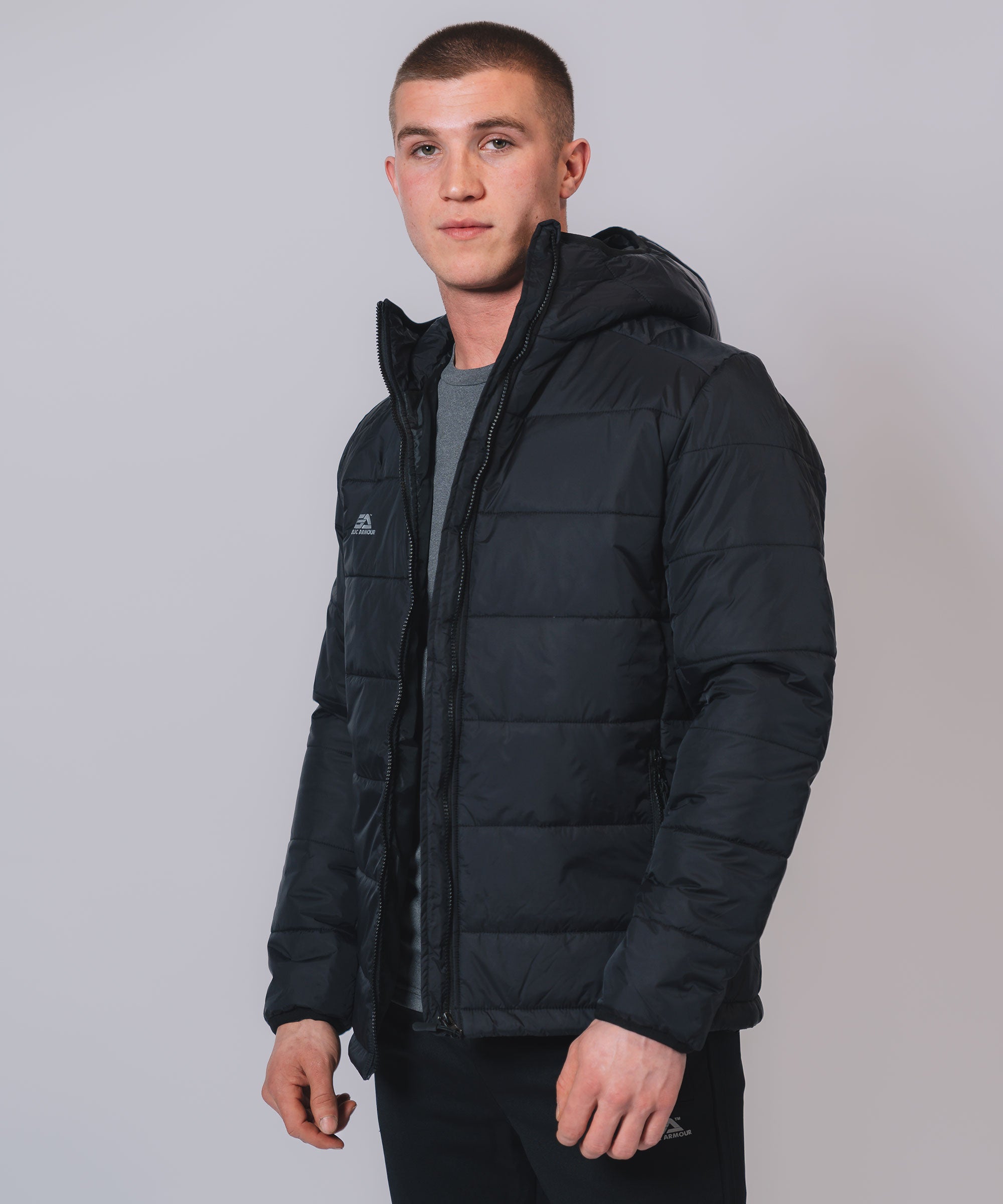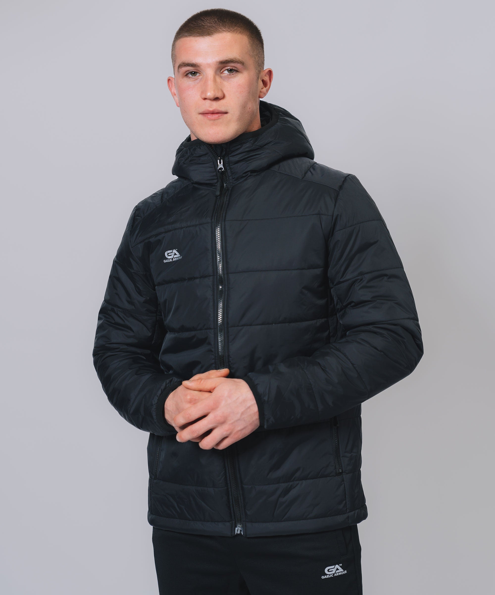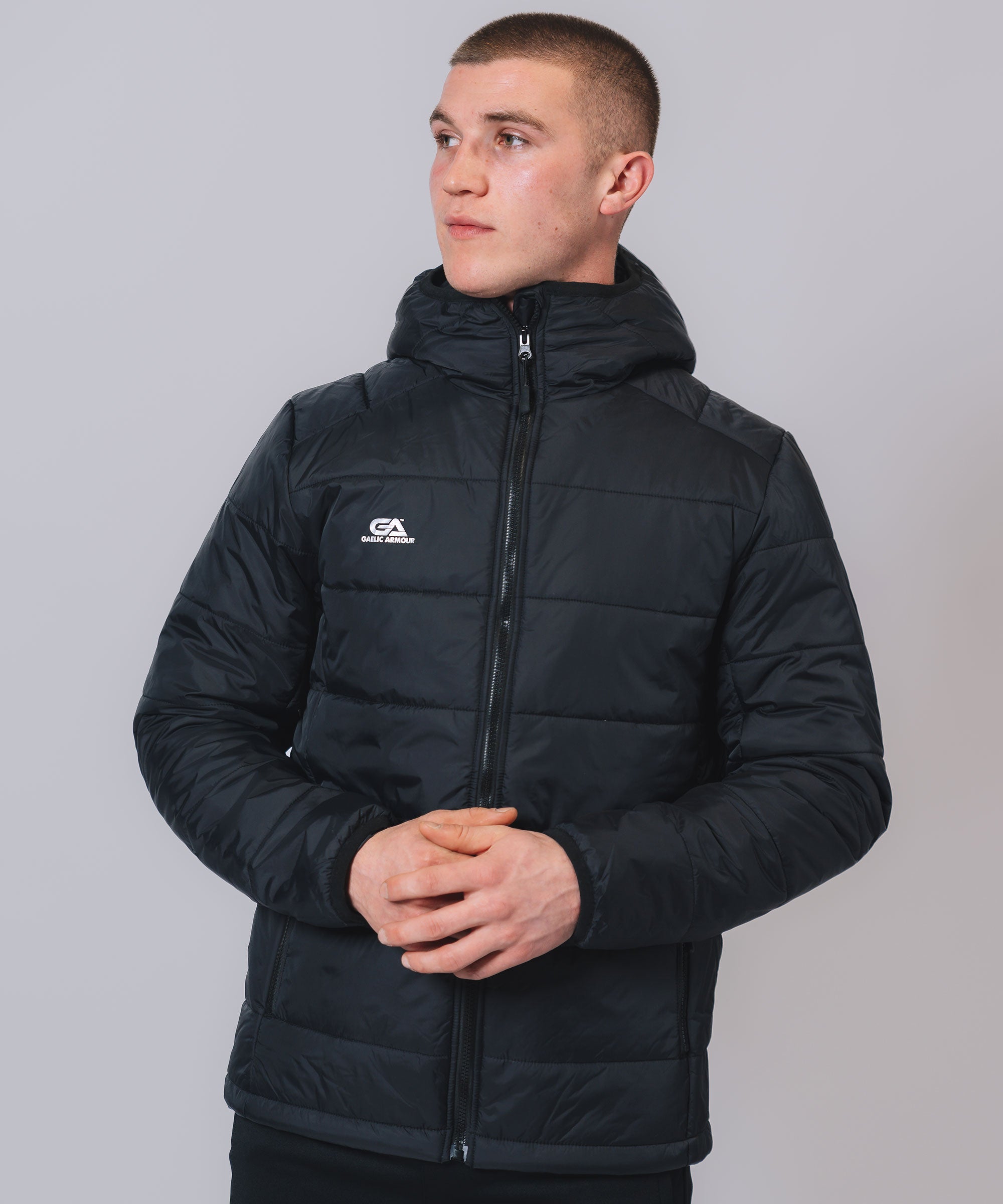Our Padded Hooded Jacket gives weather protection & insulation all season, Ideal layer option in even the toughest conditions. The outer shell fabric works to shed rain, while the insulation helps regulate your body temperature so you can take to the streets or sideline with confidence. Stay warm, stay dry and look your best.