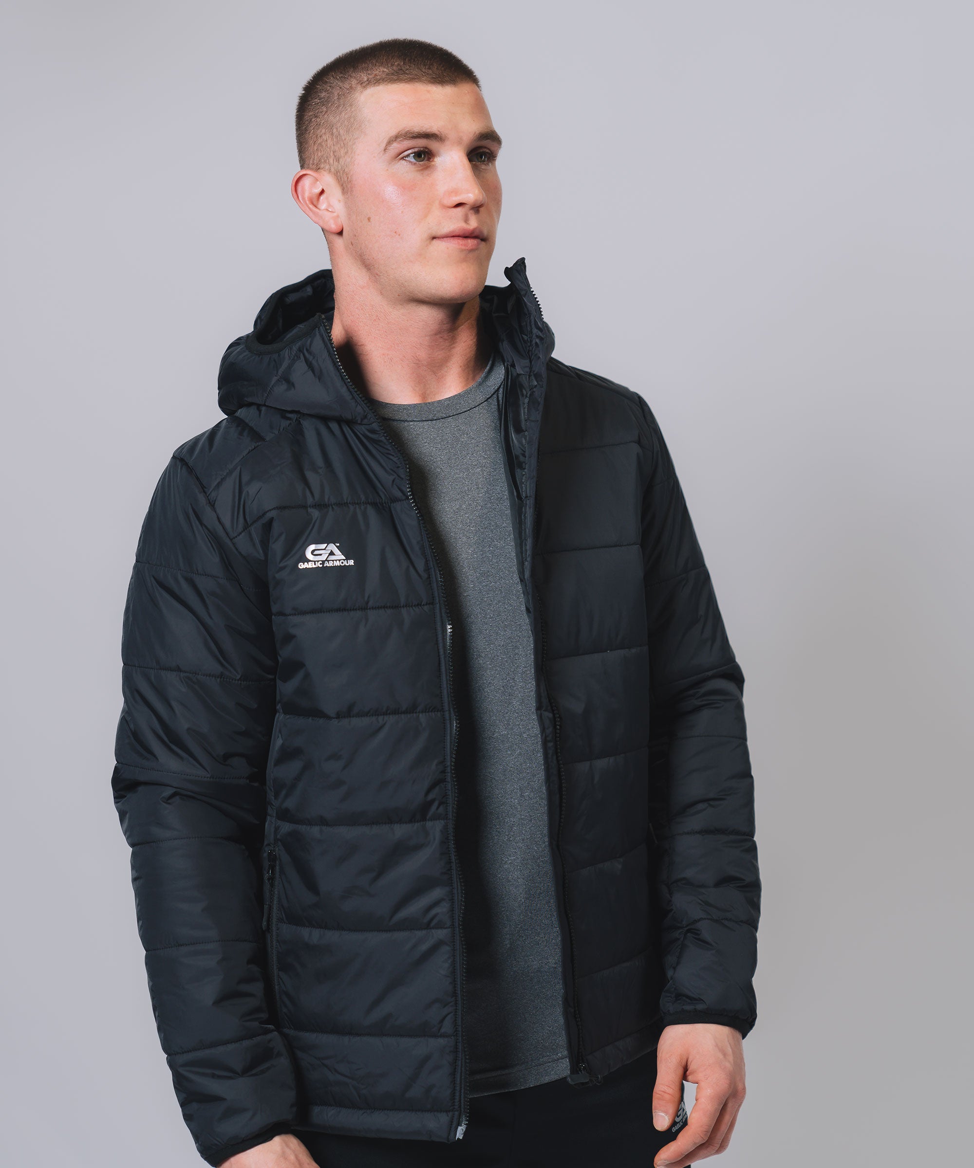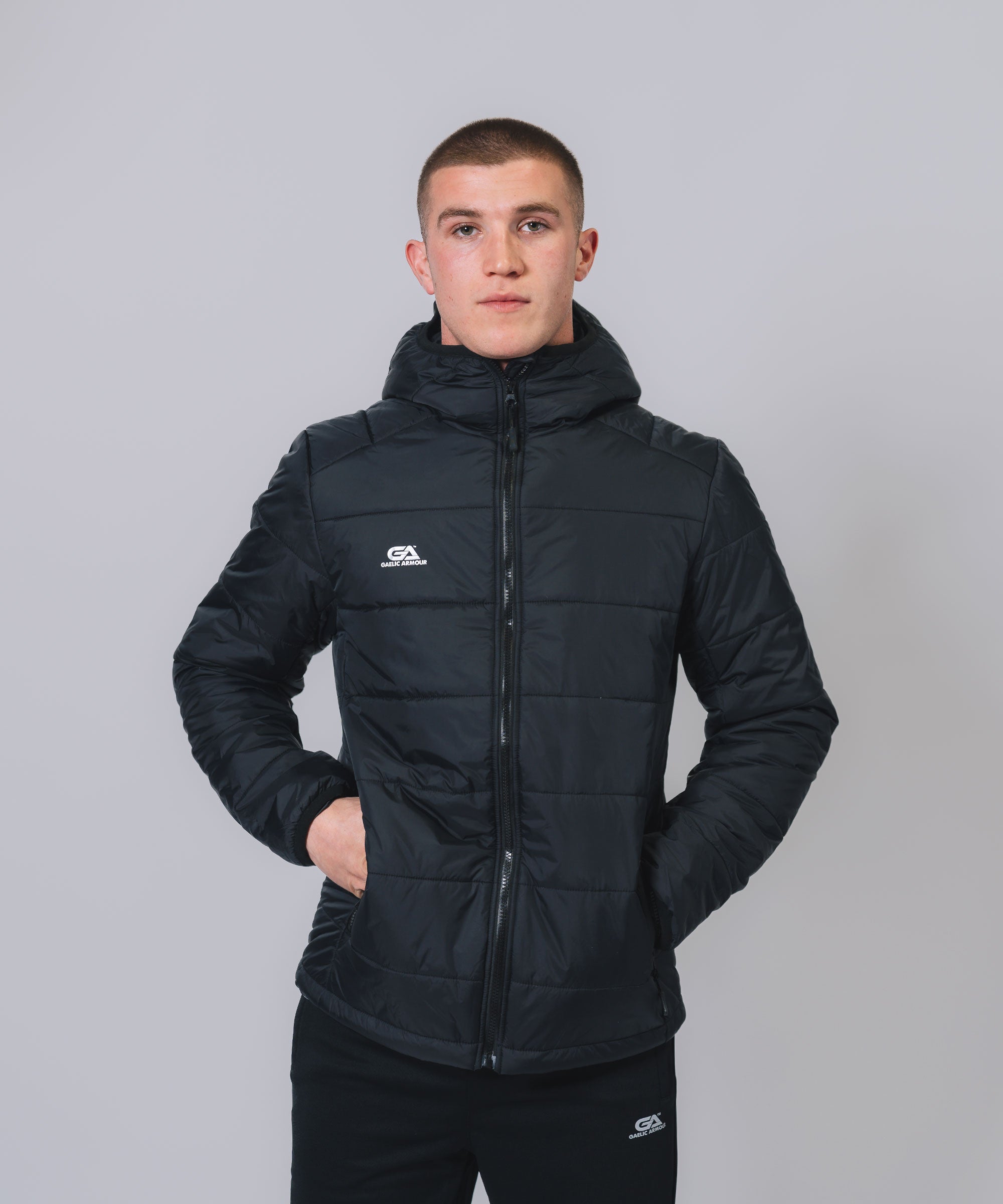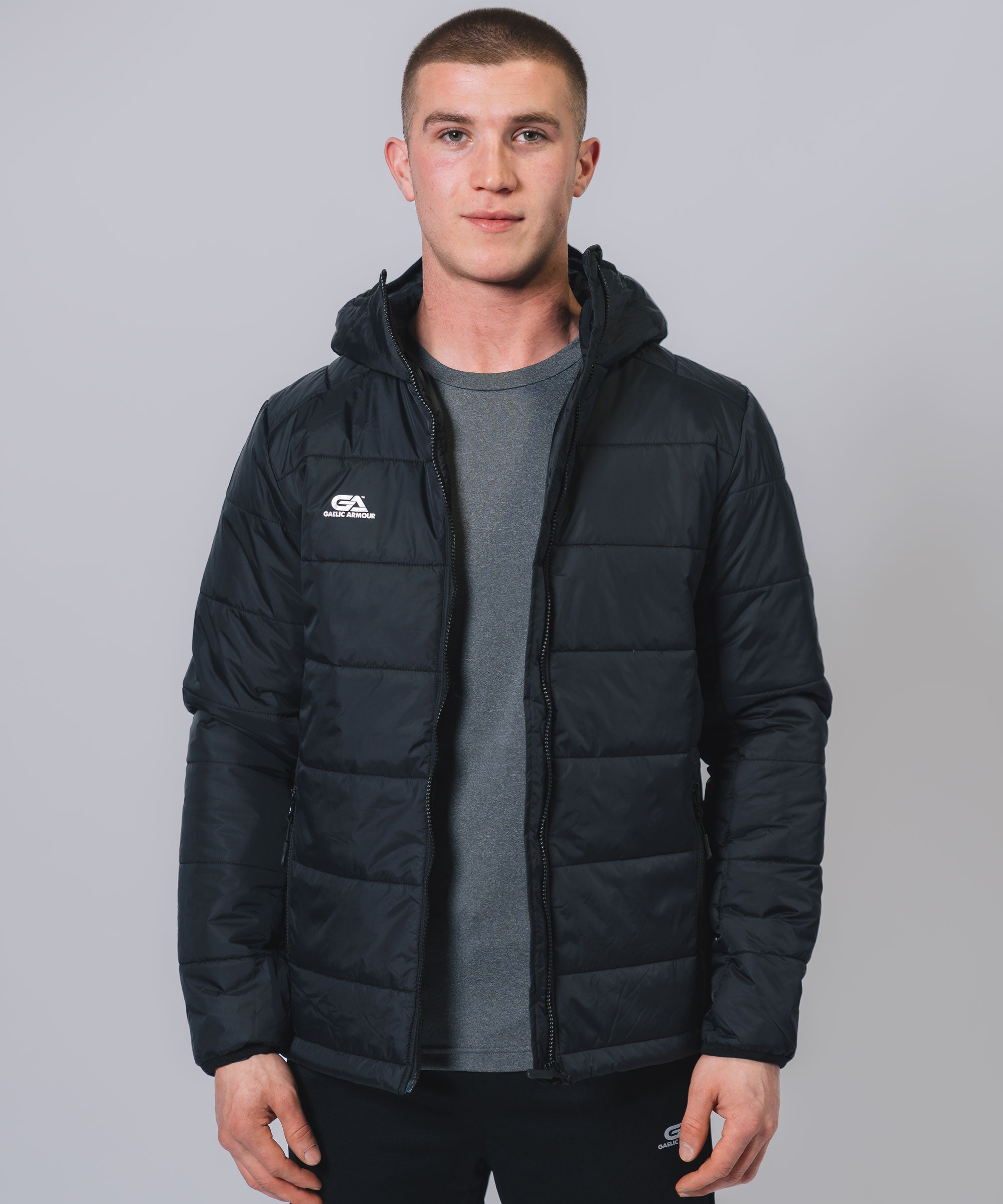 Our Padded Hooded Jacket gives weather protection & insulation all season, Ideal layer option in even the toughest conditions. The outer shell fabric works to shed rain, while the insulation helps regulate your body temperature so you can take to the streets or sideline with confidence. Stay warm, stay dry and look your best.