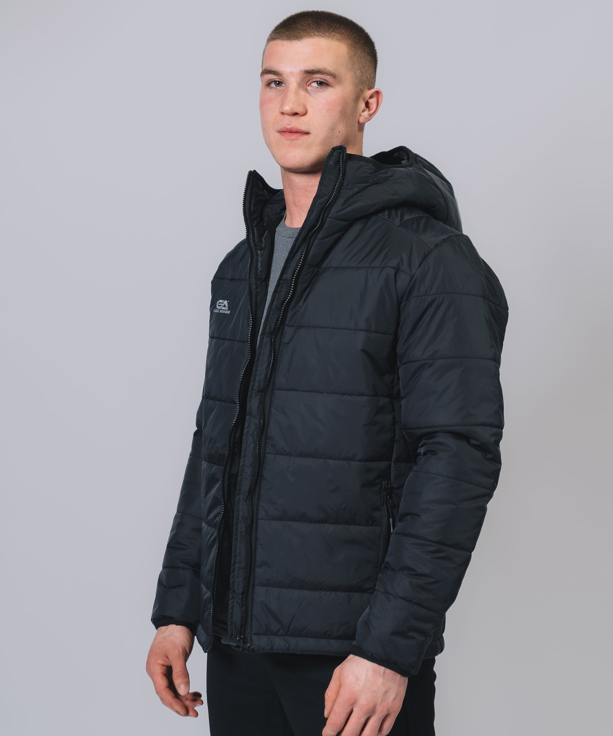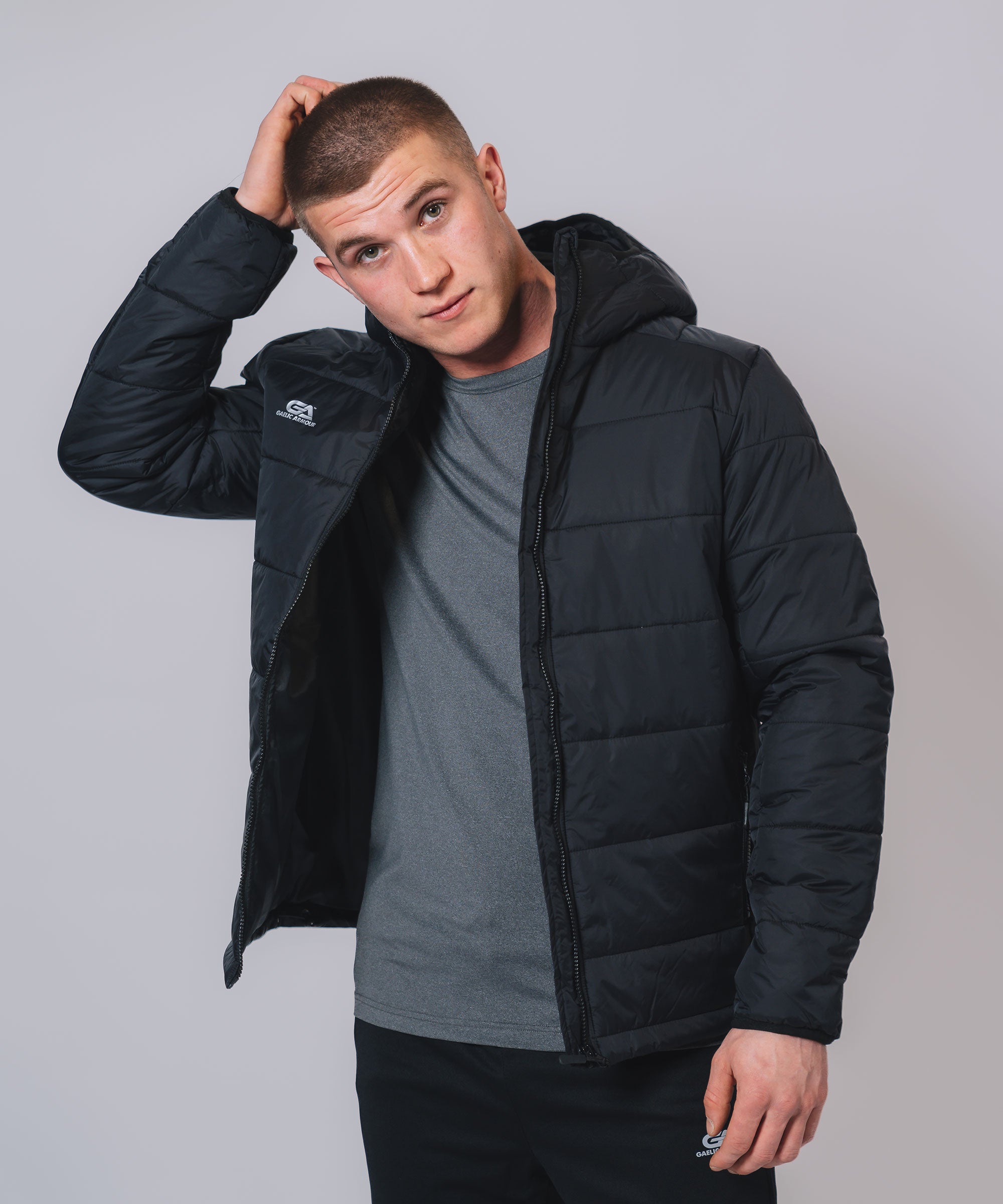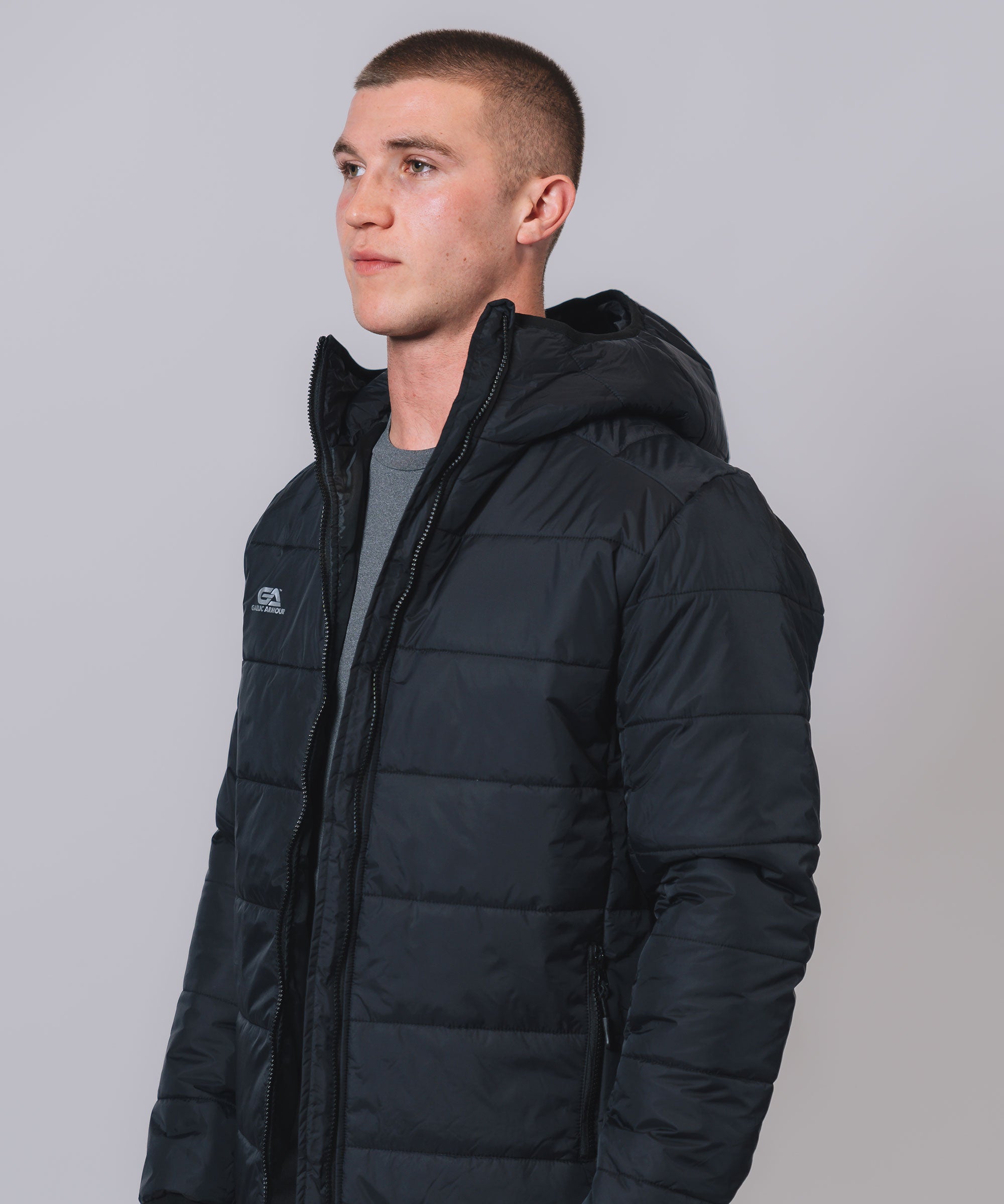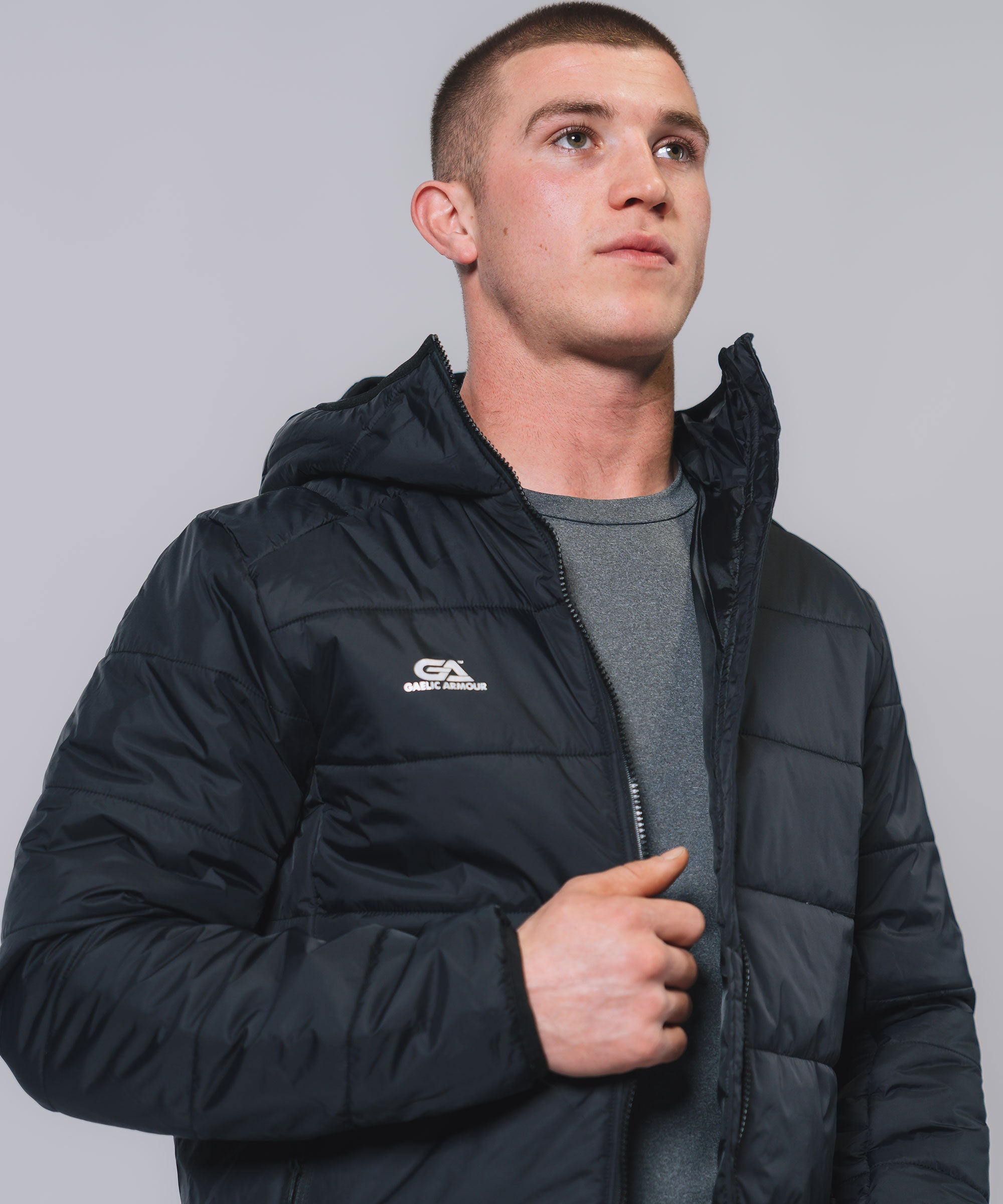 Our Padded Hooded Jacket gives weather protection & insulation all season, Ideal layer option in even the toughest conditions. The outer shell fabric works to shed rain, while the insulation helps regulate your body temperature so you can take to the streets or sideline with confidence. Stay warm, stay dry and look your best.